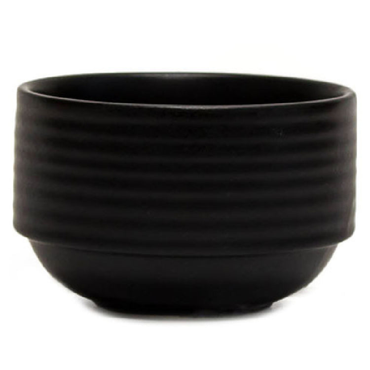 The Vertex China E-4S-O Bouillon 9 Oz. 3-7/8" Dia. is a premium dining solution designed to meet the diverse needs of the food service industry. Crafted with precision, this round bouillon cup features a 9-ounce capacity, making it an ideal choice for serving broths, soups, and other hot liquid dishes. Its dimensions, with a diameter of 3-7/8 inches, are optimized for both practicality and elegance. The stackable design maximizes storage efficiency, a crucial aspect for busy kitchens where space is a premium. The polished foot enhances stability and adds a touch of sophistication, while the subtle embossing adds a unique aesthetic appeal. Made with Onyx, a matte black finish, this bouillon cup is part of Vertex China's Premium Organics Elements collection, reflecting a commitment to quality and style. Packaged in cases of three dozen, it’s tailored for bulk purchase, catering to restaurants, hotels, and catering services looking for reliable and stylish dishware. The Vertex China E-4S-O is more than just a serving piece; it’s a blend of functionality and design, catering to high-end establishments that value both performance and presentation in their culinary offerings.