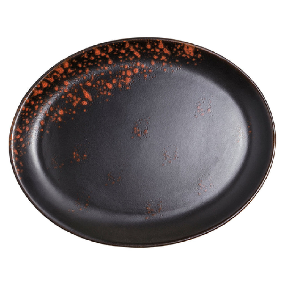 The Vertex China LMC-14 Platter 13-1/2" Oval is a meticulously crafted dining service piece, emphasizing durability and aesthetic appeal within the hospitality industry. As part of the Premium London Moonstone Collection, this platter is a testament to quality featuring a hand-painted, matte black and terra cotta reactive glaze that enhances any dining presentation. The platter's dimensions include a length of 13-1/2 inches, providing ample space for displaying culinary creations. Its oval shape and coupe style offer a modern yet timeless elegance, suitable for both casual dining and upscale venues. Constructed with a porcelain body reinforced with aluminum oxide, the LMC-14 is engineered to be scratch resistant, ensuring longevity even in high-traffic settings. The fully glazed foot prevents surface scratches on tables and ensures stability during use, an essential feature for bustling restaurant environments. This platter, packed by the dozen, is ideal for caterers, restaurateurs, and event planners seeking reliable dinnerware that combines functionality with a sophisticated aesthetic. The Vertex China LMC-14 stands out as a leading choice in porcelain serveware for those who demand both style and resilience in their dining presentations.
