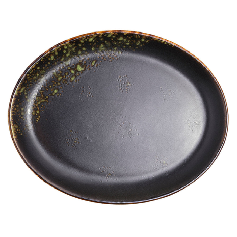 The Vertex China LMJ-14 Platter 13-1/2" Oval is an exceptional piece from the renowned London Moonstone Collection, designed to meet the diverse needs of the food service industry. This platter, measuring 13-1/2 inches in length, features a classic oval shape and a coupe design that enhances its versatility for different culinary presentations. Crafted from premium porcelain, it boasts an aluminum oxide reinforced body, ensuring durability and resistance to scratches. The platter is hand-painted with a matte black and jade reactive glaze, providing a unique aesthetic appeal that elevates any dining experience. Its fully glazed foot enhances stability and protects surfaces from scratches, making it ideal for high-traffic commercial settings such as restaurants and catering services. This platter is packed by the dozen, offering both convenience and cost-effectiveness for large-scale operations. The Vertex China LMJ-14 Platter exemplifies the blend of functionality and elegance, appealing to a range of market segments, from upscale dining establishments to event planners seeking quality and style in their tableware selections.