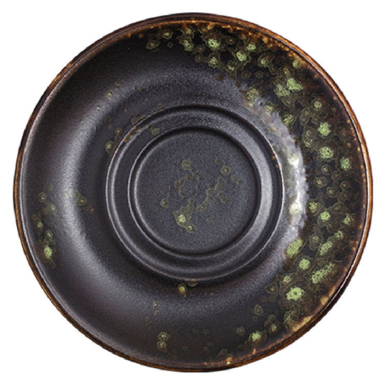 The Vertex China LMJ-2 Saucer 6" Dia. Round is a meticulously crafted piece originating from the esteemed London Moonstone Collection, embodying both elegance and durability. This saucer features a 6-inch diameter and is designed with a round, double well structure, optimizing it for diverse functional applications in both casual and upscale dining settings. Hand-painted with a matte black and jade reactive glaze, it integrates a sophisticated aesthetic appeal, making it a versatile choice for various market segments within the food service industry. The saucer's fully glazed foot ensures stability and reduces surface scratches, while its aluminum oxide reinforced porcelain body exhibits exceptional scratch resistance, enhancing its longevity in high-traffic environments. This premium product is designed to withstand rigorous usage, offering both aesthetic charm and practical utility. Packed by three dozen per case, the Vertex China LMJ-2 Saucer is ideal for hospitality establishments seeking both style and substance in their tableware collections. Its exquisite craftsmanship and robust design make it an excellent choice for businesses aiming to elevate their dining presentation with a reliable and visually striking product.
