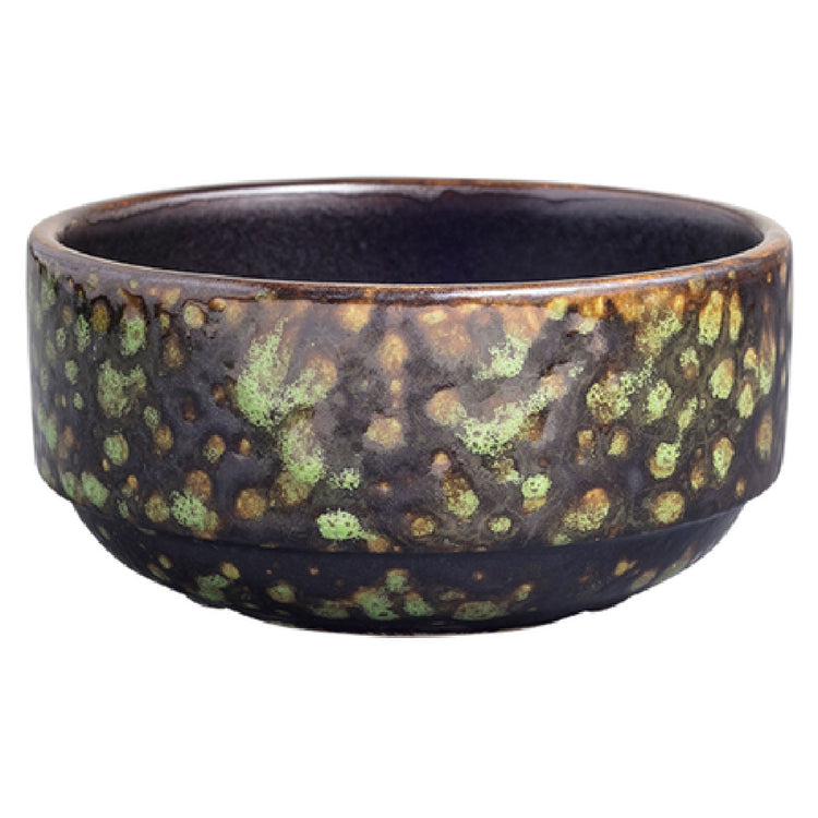 The Vertex China LMJ-4S Bouillon 10 Oz. 4-5/16" is a premium piece from the London Moonstone Collection, designed to meet the high standards of the culinary and hospitality industry. This bouillon cup offers a 10-ounce capacity, providing ample space for serving soups and broths. Its 4-5/16" round design and stackable feature optimize storage efficiency, making it an excellent choice for busy kitchens. The hand-painted, fully glazed foot ensures a smooth, scratch-resistant surface, maintaining its elegant matte black and jade reactive glaze appearance over time. Reinforced with aluminum oxide, this porcelain cup stands out for its durability and resistance to wear, catering to high-traffic environments such as restaurants, hotels, and catering services. This thoughtful construction not only enhances its aesthetic appeal but also ensures longevity and practicality, adding value to formal and casual dining settings alike. Each case contains three dozen units, providing a cost-effective solution for large-scale operations. The Vertex China LMJ-4S Bouillon cup is a sophisticated and functional addition to any tableware collection, designed to seamlessly blend with a variety of dining themes and elevate the dining experience.