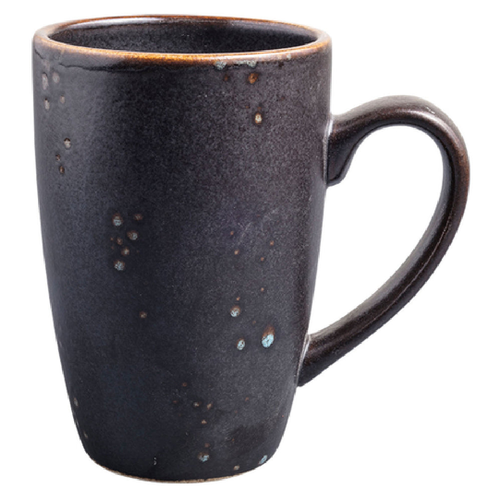 The Vertex China LMS-178 Mug 10-1/2 Oz. 2-7/8" is a meticulously crafted piece from the renowned London Moonstone Collection, designed to cater to the diverse needs of both commercial and home settings. This mug boasts a generous capacity of 10-1/2 ounces, making it suitable for a variety of beverages. Its dimensions are precisely 2-7/8" in diameter, offering a comfortable grip enhanced by its sturdy handle. The mug is hand painted, showcasing a unique matte black and sky blue reactive glaze that enhances its aesthetic appeal, providing a modern yet elegant touch. The fully glazed foot ensures stability and protects surfaces from scratches, while the scratch-resistant finish maintains the mug's pristine appearance over time. Constructed from high-quality porcelain, the body of the mug is reinforced with aluminum oxide, delivering exceptional durability and longevity. This product is packed by 3 dozen per case, making it an economical choice for restaurants, cafes, and catering businesses seeking a premium option. The Vertex China LMS-178 Mug seamlessly combines functionality and style, making it an attractive choice for both everyday use and special occasions.