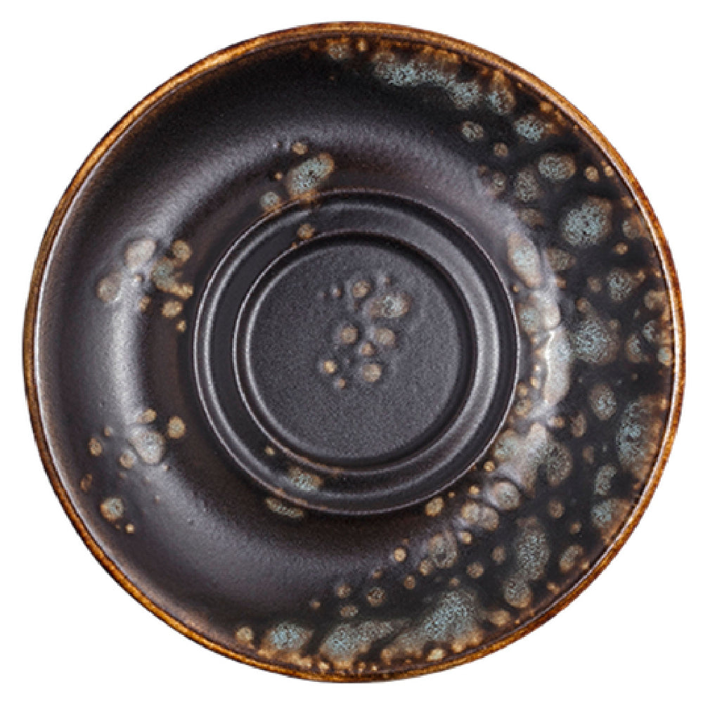 The Vertex China LMS-2 Saucer 6" Dia. Round exemplifies precision craftsmanship in porcelain dishware, part of the Premium London Moonstone Collection. This saucer, with a diameter of 6 inches, is meticulously designed with a double well and a fully glazed foot, which enhances its aesthetic appeal and durability. Its aluminum oxide reinforced body ensures exceptional scratch resistance, making it a resilient choice for high-traffic environments. The hand-painted finish in matte black and sky blue reactive glaze adds an artisanal touch, showcasing a unique blend of elegant and contemporary design. Packed by three dozen per case, this saucer is well-suited for various segments within the hospitality industry, including upscale restaurants and boutique cafes, where presentation and durability are paramount. The Vertex China LMS-2 Saucer's thoughtful construction ensures it meets the rigorous demands of professional settings, making it a valuable asset for culinary establishments aiming to elevate their tableware offering with a blend of style and functionality.