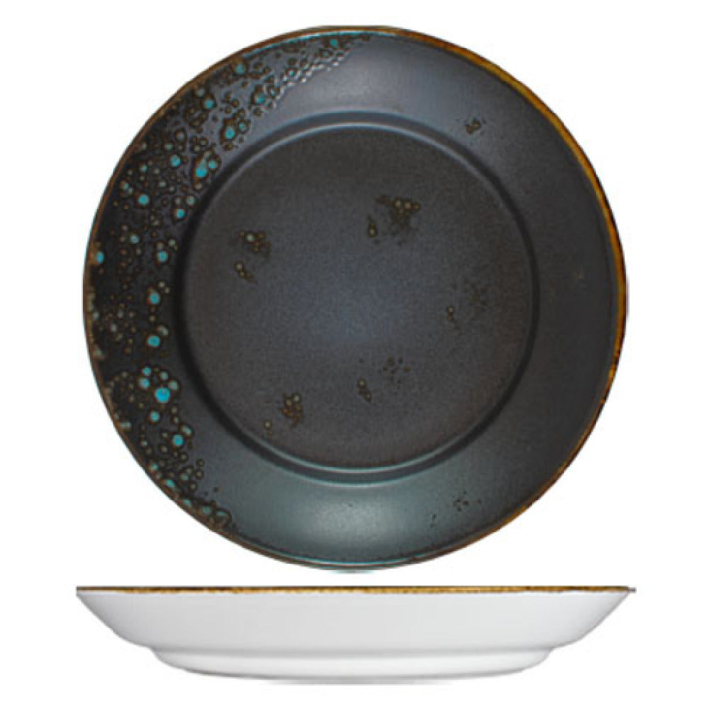 The Vertex China LMS-E23 Entrée Bowl 10 Oz. 11-3/4" Dia. is a premium selection from the esteemed London Moonstone Collection, renowned for its fusion of aesthetic appeal and functional excellence. This round entrée bowl boasts a substantial capacity of 10 ounces, ideally suited for serving a variety of dishes with elegance. It measures an impressive 11-3/4 inches in diameter, providing ample space for creative culinary presentations. Each bowl is meticulously hand-painted, featuring a matte black and sky blue reactive glaze that ensures a unique finish on every piece. Constructed from porcelain, the bowl benefits from an aluminum oxide reinforced body, enhancing its durability and making it scratch resistant. The fully glazed foot prevents abrasion and ensures the bowl maintains its aesthetic appeal over time. Designed with the hospitality industry in mind, it is packed by 12 dozen per case, facilitating easy inventory management for restaurants, hotels, and catering services. By combining artisanal craftsmanship with practical durability, the Vertex China LMS-E23 Entrée Bowl serves as a versatile choice for establishments that seek to elevate their dining experience with high-quality, distinctive tableware.