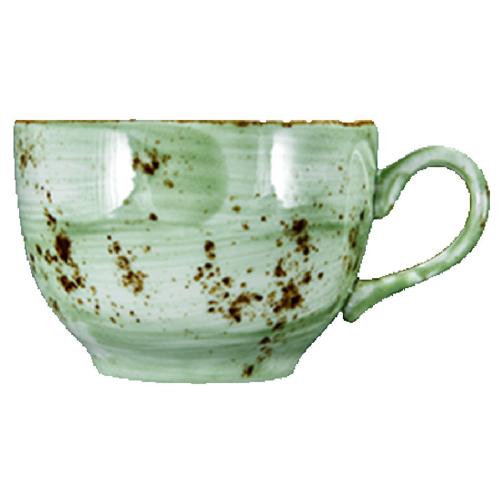 The Vertex China LTJ-1 Cup 8 Oz. 3-1/2" is a meticulously crafted cup that stands out in the London Terra Collection. With a capacity of 8 ounces and a diameter of 3-1/2 inches, this cup is a perfect blend of design and functionality, catering to diverse needs in the hospitality industry. The cup features a conveniently placed handle, enhancing user comfort and grip. Its hand-painted finish adds a touch of elegance, making it suitable for upscale dining establishments. The fully glazed foot ensures stability and prevents scratches on surfaces, a crucial feature for maintaining the longevity of your dining ware. Constructed with an aluminum oxide reinforced body, this cup offers exceptional durability, making it an ideal choice for high-traffic environments such as restaurants, cafes, and hotels. The terra jade color adds a distinctive aesthetic appeal, aligning with modern dining trends. As part of the Premium line, the Vertex China LTJ-1 Cup is designed to meet the highest standards of quality and style. Each case contains three dozen cups, providing an efficient solution for establishments looking to maintain a uniform and appealing table setting. This cup is a functional and stylish addition to any establishment's tabletop collection.