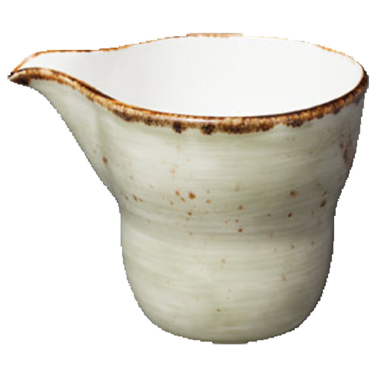 Vertex China LTJ-CM Creamer 3 Oz. 3" X 2-1/4" - This meticulously designed creamer is part of the distinguished London Terra Collection. With a compact size of 3 inches by 2-1/4 inches, it holds a capacity of 3 ounces, making it a perfect choice for various dining settings. The creamer is crafted without a handle, allowing for a sleek and modern aesthetic that complements its hand-painted, terra jade finish. Constructed with an aluminum oxide reinforced body, this piece ensures durability and strength, suitable for high-demand environments. The creamer's fully glazed foot provides additional protection and stability, reducing the risk of surface scratches and enhancing its longevity. Ideal for upscale restaurants, cafés, and catering events, this premium creamer is packaged by 3 dozen per case, catering to bulk purchasing needs of professional culinary establishments. Its unique combination of premium materials and thoughtful design makes the Vertex China LTJ-CM Creamer a valuable addition to any tableware collection, providing both functional and aesthetic benefits for different market segments within the foodservice industry.