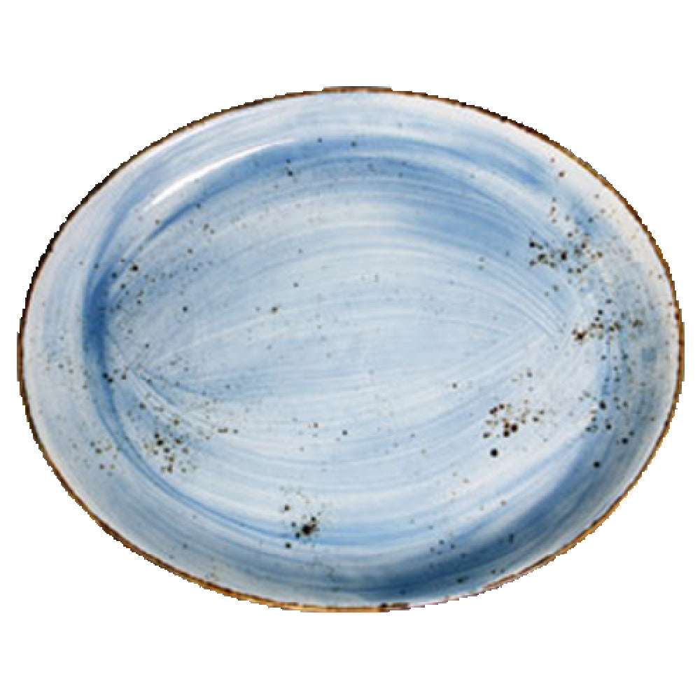 The Vertex China LTS-14 Platter 13-1/2" Oval is a meticulously crafted piece that stands as a testament to elegance and durability. This platter is part of the distinguished London Terra Collection, featuring a hand-painted design in Terra Sky that adds a touch of sophistication to any dining setting. Measuring 13-1/2 inches and shaped in an oval coupe style, it provides ample space for serving a variety of dishes, making it a versatile choice for both restaurants and catered events. The fully glazed foot ensures a smooth finish, preventing scratches on tabletops and enhancing the longevity of the piece. Constructed with an aluminum oxide reinforced body, this platter offers superior strength and resistance to chipping, which is essential for frequent use in high-volume environments. It comes packed by the dozen, catering perfectly to the needs of large-scale food service operations. With its premium design and robust construction, the Vertex China LTS-14 Platter is ideal for establishments seeking to combine functionality with a refined aesthetic. Its unique attributes make it a valuable addition to any tableware collection, meeting the demands of various market segments within the hospitality industry.