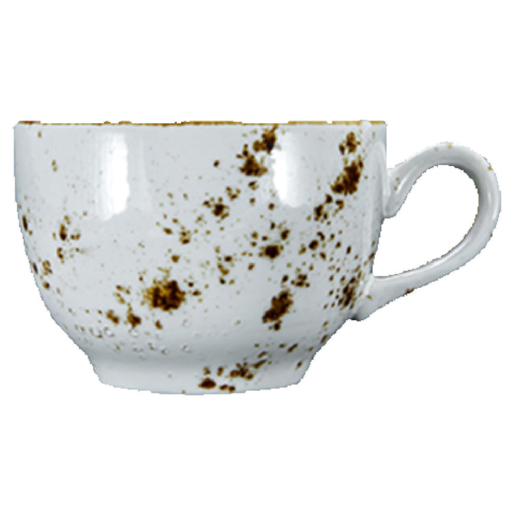The Vertex China LTW-1 Cup 8 Oz. 3-1/2" is a meticulously crafted beverage vessel from the esteemed London Terra Collection, embodying a harmonious blend of functionality and aesthetic appeal. This premium cup, with its 8 oz. capacity and compact 3-1/2" diameter, is designed with a practical handle for ease of use and comfort. Its hand-painted finish and fully glazed foot offer a touch of artisanal elegance, making it suitable for upscale dining experiences. The body of the LTW-1 Cup is reinforced with aluminum oxide, enhancing its durability and resistance to wear, which is particularly advantageous for high-traffic restaurants and cafés. The cup's terra white hue provides a sophisticated and versatile base that complements diverse table settings and décor styles. Packed by 3 dozen per case, it is an ideal choice for hospitality industry professionals seeking both quality and quantity. Whether for fine dining establishments or casual eateries, the Vertex China LTW-1 Cup delivers a unique value proposition with its blend of durability, aesthetic appeal, and practical design, catering to varied market segments in the food service industry.