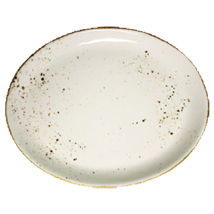 The Vertex China LTW-14 Platter 13-1/2" Oval is a meticulously designed piece from the distinguished London Terra Collection, embodying both elegance and durability. This platter features a 13-1/2 inch oval shape, providing ample space for a variety of culinary presentations. Its coupe design enhances its aesthetic appeal, integrating seamlessly into both contemporary and traditional table settings. Each piece is hand painted, reflecting a dedication to craftsmanship that ensures each platter possesses a unique character. The platter is constructed with a fully glazed foot, contributing to its polished and refined finish while ensuring stability during use. Engineered with an aluminum oxide reinforced body, the LTW-14 Platter offers superior strength and longevity, making it a reliable choice for both high-volume commercial use and sophisticated home dining experiences. The terra white color lends a classic and versatile appeal, complementing a wide array of dining themes. Packed by the dozen, this premium platter is ideally suited for restaurants, hotels, and catering services seeking to elevate their presentation with a touch of understated elegance. The Vertex China LTW-14 Platter 13-1/2" Oval stands as a testament to quality and innovative design in the culinary serving industry.