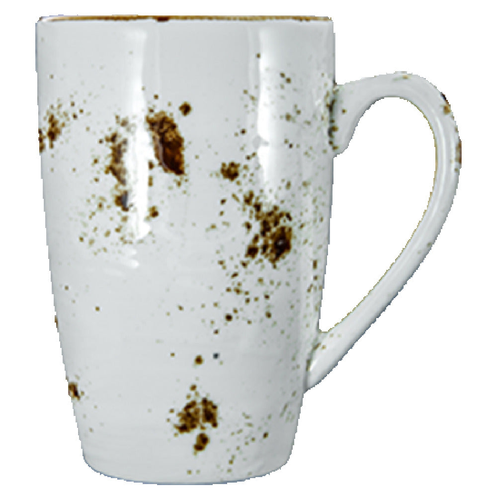 The Vertex China LTW-178 Mug is a refined piece within the London Terra Collection, characterized by a 10-1/2 oz. capacity and a 2-7/8" diameter that suits a variety of serving needs. This mug is expertly crafted with a handle for easy grip, making it practical for both casual and formal settings. Its hand-painted exterior presents a unique aesthetic, while the fully glazed foot ensures stability and reduces surface scratches on tables and countertops. Constructed with an aluminum oxide reinforced body, it offers enhanced durability and resistance to wear, suitable for high-traffic environments such as restaurants, cafés, and hotels. The terra white finish adds an elegant touch, complementing diverse tabletop decors. This premium mug is packed by 3 dozen per case, providing an economical option for businesses seeking to maintain a consistent style across their service offerings. The Vertex China LTW-178 Mug is an ideal choice for food service professionals who value both style and functionality in their serving ware.