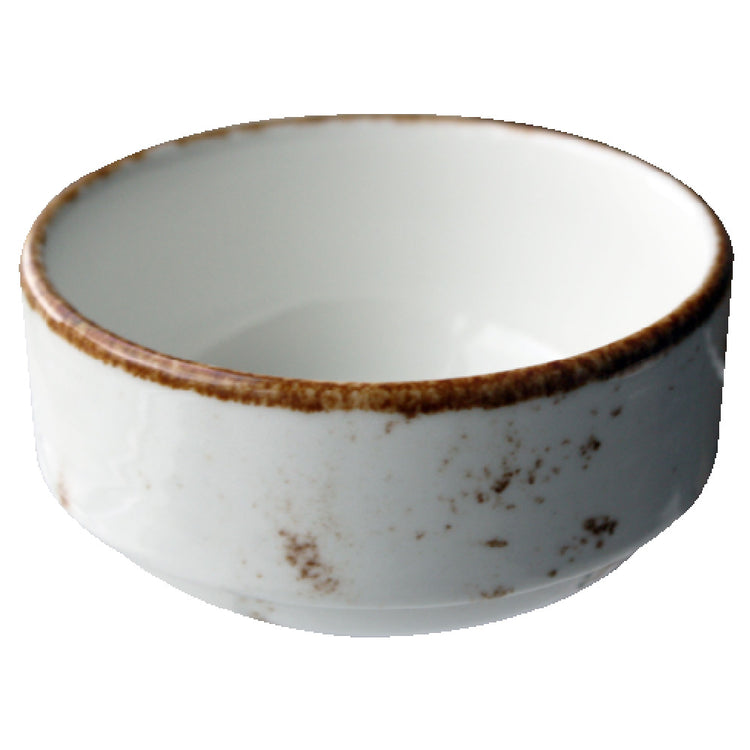 The Vertex China LTW-4S Bouillon 10 Oz. 4-5/16" Dia. is a meticulously designed piece from the London Terra Collection, expertly crafted for diverse segments of the food service industry. This round, stackable bouillon bowl has a capacity of 10 ounces, providing ample space for serving soups and broths. With a diameter of 4-5/16 inches, it offers a perfect balance between size and functionality, fitting seamlessly into various table settings. The hand-painted design and terra white color add a touch of elegance, enhancing the dining experience for customers in both casual and fine dining establishments. Its fully glazed foot ensures stability and prevents scratch marks on tables, making it an ideal choice for high-traffic restaurants, catering services, and hotels. The aluminum oxide reinforced body enhances its durability, catering to the rigorous demands of commercial kitchens. Packaged by 3 dozen per case, it supports efficient inventory management for large-scale operations. The Vertex China LTW-4S Bouillon is a premium product that combines aesthetic appeal with practical durability, making it a valuable asset for any food service business that values quality and style in their tableware collection.