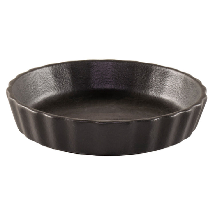 The Vertex China OB-Q5 Quiche Dish 6 Oz. 5" Dia. is a premium piece of kitchenware designed for versatility and durability. With a capacity of 6 ounces and a diameter of 5 inches, this round dish is perfectly sized for creating individual quiches or serving other culinary delights. The dish features elegantly fluted sides, adding a touch of sophistication to its presentation. Constructed from high-quality porcelain, it boasts a matte black finish that complements contemporary dining aesthetics. The dish is engineered to be scratch-resistant, ensuring long-lasting use even in busy kitchen environments. It is also safe for use in microwaves, ovens, freezers, and dishwashers, highlighting its adaptability across various cooking and storage methods. Part of Vertex China's Premium Organics collection, the Obsidian line, this quiche dish is packed by 2 dozen per case, catering to the needs of restaurants, caterers, and hospitality venues. Its robust construction and elegant design make it a valuable asset for food service professionals seeking both functionality and style in their serveware.