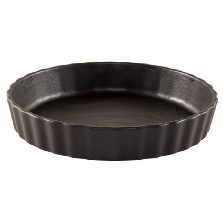 The Vertex China OB-Q7 Quiche Dish 16 Oz. 7-1/2" Dia. is a meticulously crafted piece, distinguished by its round shape and fluted sides that enhance both aesthetics and functionality. Constructed from premium porcelain, this dish is designed to withstand the rigors of a professional kitchen, being scratch resistant and safe to use in microwaves, ovens, freezers, and dishwashers. Its matte black finish adds a touch of elegance, making it suitable for upscale dining settings. With a generous capacity of 16 ounces and a diameter of 7-1/2 inches, this quiche dish is versatile, catering to both individual servings and shared portions. The Vertex China OB-Q7 is part of the Premium Organics Obsidian collection, ensuring that it aligns with high industry standards for quality and style. Packed by 2 dozen per case, this dish is ideal for restaurants, catering services, and bakeries looking to enhance their presentation with durable yet sophisticated serveware. Its combination of practicality and visual appeal makes it a compelling choice for culinary professionals seeking reliable dishware that complements fine dining atmospheres.