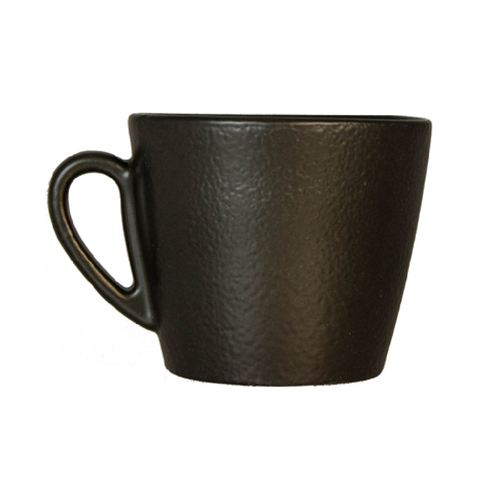 The Vertex China OR-1 Cup - 9 Oz. - 3-1/2"H is an exemplary piece crafted for the discerning user seeking both style and durability. This tall cup is constructed from premium porcelain, ensuring a scratch-resistant surface that withstands the rigors of frequent use. Finished in a matte black, it exudes a sophisticated aesthetic that seamlessly integrates into a variety of dining settings. As part of the Premium Organics Orbit collection, this cup is designed to fit perfectly with the OR-2, enhancing its versatility for restaurant and hospitality environments. Each case is packed with three dozen units, making it a practical choice for bulk purchase in commercial settings. The Vertex China OR-1 Cup is ideal for establishments that value both form and function, offering a unique blend of elegance and resilience. Its design and construction are tailored to meet the needs of different market segments within the hospitality industry, from high-end restaurants to casual dining venues, providing a reliable and attractive serving option for a wide range of beverages.