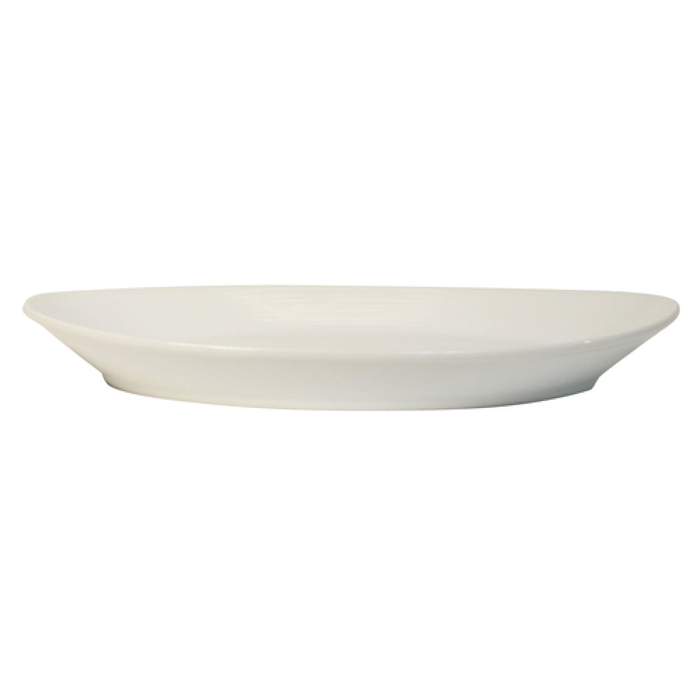 The Vertex China RA-12 Plate 10-3/8" x 6-3/4" Oval is a meticulously designed porcelain piece, part of the esteemed Radiance Collection. Featuring a subtle embossment and rolled edge, this plate exudes elegance while being highly functional. Crafted in bright white, it matches effortlessly with diverse table settings, enhancing presentation quality for various dining establishments. Its universal appeal makes it suitable for upscale restaurants, casual dining venues, and catering services. The thoughtful dimensions of 10-3/8" x 6-3/4" offer ample space for presenting a variety of culinary creations, from appetizers to entrees. Packed by the dozen, these plates provide practicality and value, ensuring establishments maintain an adequate stock for high-volume service. The durable porcelain construction ensures longevity and resilience, meeting the demands of busy commercial environments. The Vertex China RA-12 Plate's sophisticated design and reliable build make it a versatile choice for industry professionals seeking quality and style in their tableware selections.