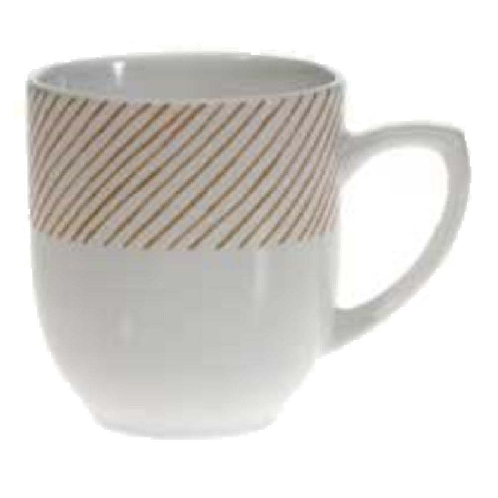 The Vertex China RB-17-LSG Tahoe Cup 9 Oz. 3-1/8" is a meticulously designed drinking solution that marries aesthetic appeal with functionality. Part of the distinguished Premium Rubicon Collection, this cup is crafted with a magnesium-reinforced body, enhancing its durability and strength, making it a reliable choice for various market segments including hospitality and dining establishments. The cup features a polished foot, ensuring stability on any surface, while its handle provides a comfortable grip for ease of use. The super white finish adds a touch of elegance, making it suitable for both formal and casual dining settings. With a capacity of 9 oz., it is ideal for serving a variety of beverages. The Linear Sun Gold design highlights its visual appeal, making it a standout piece. Perfectly sized at 3-1/8", it is compact yet spacious enough to cater to the beverage needs of diverse clientele. Packed by 3 dozen per case, it offers practicality for businesses requiring bulk purchases. The Vertex China RB-17-LSG Tahoe Cup is a versatile and premium option, tailored to enhance the dining experience across different industries, providing both aesthetic and functional benefits.