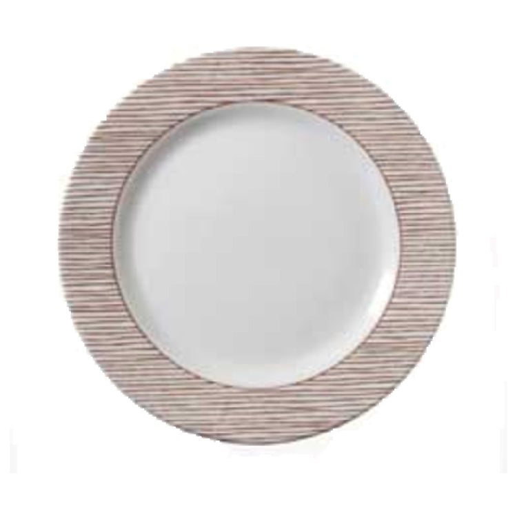 The Vertex China RB-21-LTC Plate 12" Dia. Round is a polished foot plate meticulously crafted to meet the diverse needs of the hospitality industry. With a 12-inch diameter, this round plate from the Premium Rubicon Collection is an exemplar of elegance and durability. Its magnesium-reinforced body ensures enhanced strength and resilience, making it an ideal choice for high-traffic dining environments. The super white finish of the RB-21-LTC plate offers a pristine backdrop, accentuating the presentation of culinary creations. The plate's Linear Terra Cotta design adds a sophisticated touch, making it suitable for upscale restaurants and catering services. Packed by the dozen, this collection provides cost-effective solutions for large-scale operations. The combination of robust construction and refined aesthetics makes the Vertex China RB-21-LTC Plate a versatile asset for various market segments, including fine dining, banquets, and casual eateries. Its high-quality materials and superior craftsmanship reflect a commitment to excellence, ensuring long-lasting performance and customer satisfaction in any food service setting.