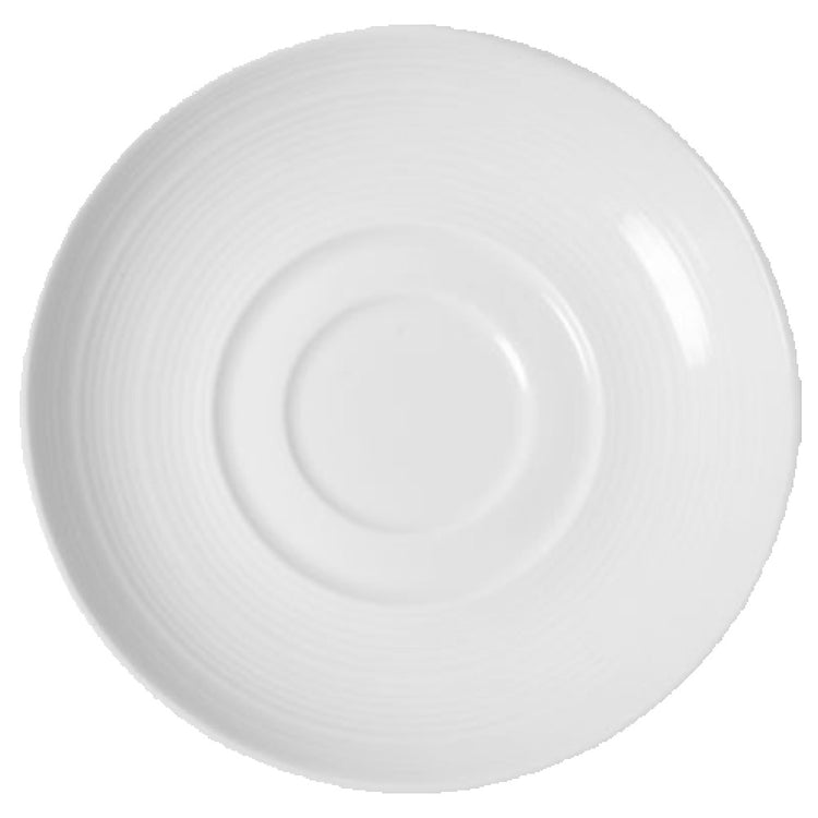 The Vertex China RH-2 Saucer 5-7/8" Dia. Round is a meticulously crafted piece designed to meet the diverse needs of various segments within the hospitality and food service industry. With a diameter of 5-7/8 inches, this round saucer features a unique double-well design, enhancing its functional capacity to securely accommodate a wide range of cup sizes. Its embossed surface adds an elegant touch, making it an attractive choice for upscale dining environments. The saucer is finished in a super white color, designated as part of the Premium Rubicon Helix collection, ensuring it complements any table setting with its modern and clean aesthetic. Packed by 3 dozen per case, the Vertex China RH-2 Saucer is an ideal solution for high-volume restaurants, cafes, and catering services seeking a durable yet stylish option for their crockery needs. The attention to detail in its design not only emphasizes practicality but also adds a refined element to the dining experience, underscoring the saucer's role as a versatile and essential component in the presentation of beverages and small dishes. This combination of durability, aesthetic appeal, and functional design makes it a valuable asset in professional dining settings.