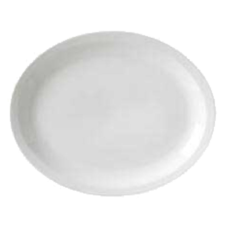 The Vertex China RN-14 Platter 13-1/4" Oval is an expertly designed piece from the Premium Rubicon Collection, distinguished by its magnesium-reinforced body that ensures durability and resilience in professional settings. This platter measures 13-1/4 inches in an oval shape, optimized for presenting a variety of culinary dishes with elegance. Its narrow rim design provides a modern aesthetic while maximizing serving space, making it suitable for high-end restaurants and hospitality venues. The super white color offers a pristine backdrop that enhances the presentation of vibrant cuisine, appealing to both traditional and contemporary dining establishments. A polished foot adds a touch of sophistication and ensures stability on any tabletop surface, reducing the risk of tipping. Packed by the dozen, this platter is a practical choice for catering services and large-scale food events seeking consistency and quality. Its engineering, tailored for the industry, emphasizes both form and function, catering to chefs and culinary professionals who demand both style and substance in their serving ware. The Vertex China RN-14 Platter’s combination of aesthetic appeal and structural integrity positions it as an excellent choice for diverse market segments within the food service industry.