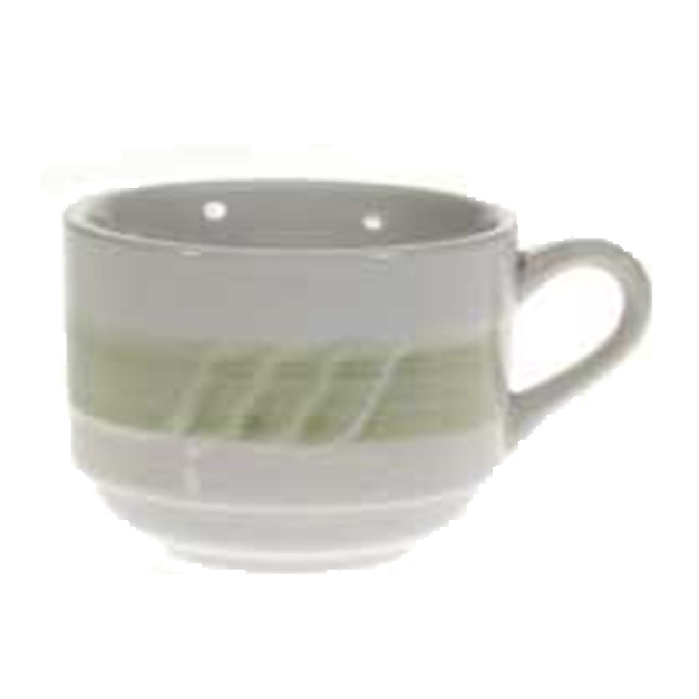 The Vertex China SAU-1S-G Cup, 8 oz., 3-1/2", is a meticulously designed cup that boasts both aesthetic appeal and practical functionality. With its round shape and ergonomic handle, it ensures a comfortable grip for users, enhancing the drinking experience. This cup is part of the Sausalito Collection, known for its sculpted lines and the distinctive Harvest Water Colors, with an elegant Cilantro finish that adds a touch of sophistication to any setting. A key feature of this cup is its stackable design, allowing for efficient storage that is particularly beneficial for commercial establishments such as restaurants and cafes. The Vertex China SAU-1S-G is designed to fit seamlessly with the SAU-2 saucer, ensuring a coherent and coordinated tabletop presentation. Sold in cases of three dozen, it is ideal for bulk purchasing by hospitality venues looking to maintain a consistent and stylish dining experience. This cup is a prime choice for food service professionals seeking a blend of durability, style, and functionality in their dinnerware. Whether used in casual dining or more upscale environments, the Vertex China SAU-1S-G Cup serves as a versatile and reliable option for serving beverages.