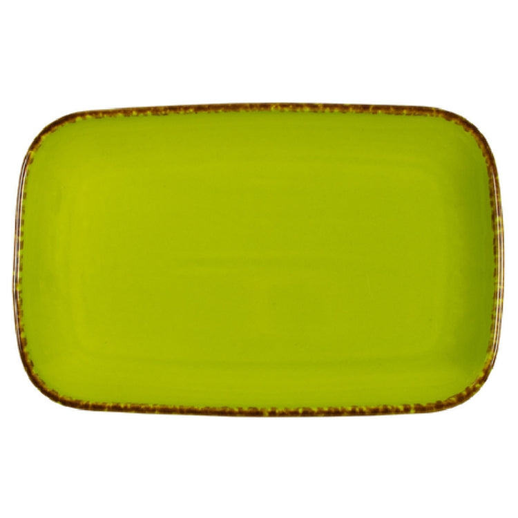 The Vertex China WLG-R14 Platter 14" x 9" x 1-1/4" Rectangular is a meticulously crafted piece of serveware from the esteemed Woodland Collection. This platter is constructed from high-quality porcelain, ensuring both durability and an elegant appearance suitable for various occasions. With its dimensions of 14 inches in length, 9 inches in width, and 1-1/4 inches in height, this platter is perfectly sized for serving a wide array of dishes, making it an ideal choice for restaurants, hotels, and catering services. Its hand-painted rim adds a touch of sophistication and uniqueness, enhancing its visual appeal. The gloss finish provides a smooth, reflective surface that accentuates the sage color, a feature that aligns with the Universal design aesthetic. Packaged conveniently by the dozen, the Vertex China WLG-R14 Platter is perfect for establishments that require both style and functionality. This platter is not only a practical serving solution but also an elegant addition to any dining setting, making it a versatile choice for industry professionals who value both form and function in their serveware selections.