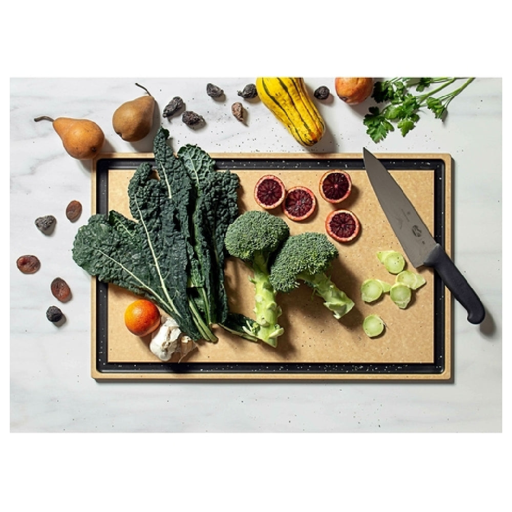 The Epicurean 006-29180102 Epicurean Chef Series Cutting Board is a high-performance kitchen essential, measuring 29 inches in length, 17-1/2 inches in width, and 1/2 inch in height. Crafted with a dual-sided design, this cutting board features a practical juice groove to efficiently manage liquids, making it versatile for various culinary tasks. Heat resistant up to 350°F, it provides exceptional durability during intense food preparation. Constructed from a paper composite, this material choice offers a natural/slate aesthetic while ensuring the surface remains non-porous and stain resistant, thereby maintaining hygiene and appearance over time. With the added convenience of being dishwasher safe, this cutting board supports effortless cleaning processes, making it ideal for both home cooks and professional chefs who prioritize time efficiency. Proudly made in the USA, the Epicurean Chef Series Cutting Board promises quality that meets the demands of different segment markets within the culinary industry, from bustling restaurant kitchens to gourmet home cooking spaces. This product's robust construction and innovative features underscore its unique value proposition as a reliable and practical tool for enhancing food preparation efficiency and maintaining a clean cooking environment.