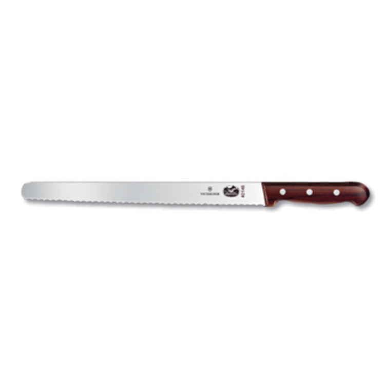 The Victorinox 5.4230.30 Slicer Knife is a professional-grade tool designed to meet the exacting standards of culinary experts. With a 12-inch blade, this slicer knife features a serrated edge that is engineered for precision and efficiency in slicing through a variety of foods. The blade width measures 1-1/4 inches at the handle, offering a balanced and controlled grip. Crafted with a wood handle, this knife not only provides an ergonomic grip but also adds a touch of elegance and sophistication to its design. The combination of a serrated edge and durable blade length makes it an indispensable tool for chefs and cooking enthusiasts who require consistent, clean cuts. Its quality construction ensures resilience and longevity in professional kitchen environments. Ideal for both commercial and personal use, the Victorinox 5.4230.30 Slicer Knife caters to diverse needs within the food service industry, delivering exceptional performance for slicing tasks. Its thoughtful design highlights Victorinox’s commitment to quality and innovation, making it a valuable addition to any culinary toolkit.