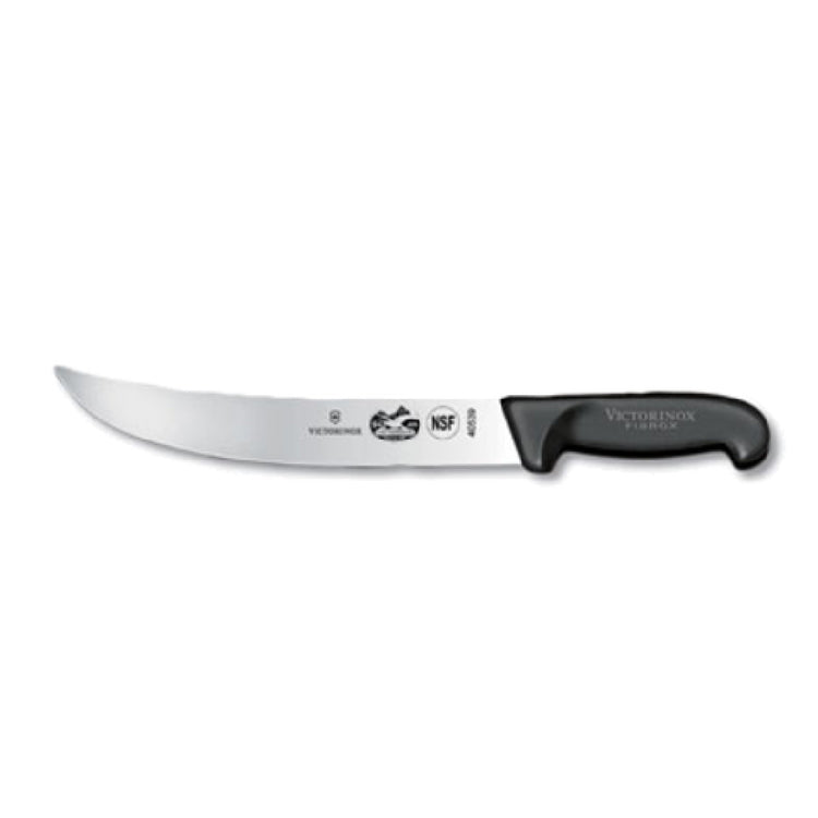 The Victorinox 5.7303.25-X4 Cimeter Knife 10" Curved Black Fibrox® Nylon Handle is a precision-crafted tool designed for efficient and safe use in professional culinary environments. This knife features a 10-inch curved blade, ideal for slicing meats with ease and precision, enhancing its suitability for butchers and chefs alike. The blade's distinctive curvature allows for smooth, uninterrupted cutting motions, particularly beneficial for segment markets involved in meat processing and preparation. Equipped with a black Fibrox® nylon handle, this cimeter knife ensures a secure grip, thanks to its slip-resistant properties, promoting user safety even in wet conditions. The handle's ergonomic design offers comfort during extended periods of use, minimizing hand fatigue. The product comes in a clamshell/peggable package, facilitating convenient storage and display. Moreover, the Victorinox 5.7303.25-X4 is NSF certified, reflecting its compliance with stringent public health and safety standards, which is crucial for institutions that prioritize hygiene and food safety. Suitable for diverse segments within the food industry, this knife combines functionality, safety, and reliability, making it an essential tool for professional kitchens, meat processing facilities, and culinary schools dedicated to maintaining high standards of operation and efficiency.