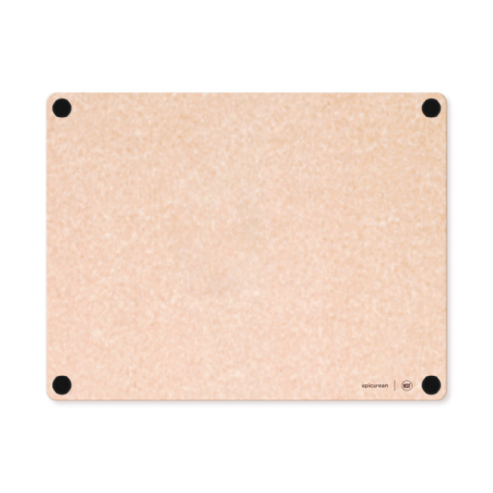 The Epicurean 622-19150103 Epicurean Prep Board is a versatile and durable kitchen tool measuring 19-1/2 inches in length, 15 inches in width, and 3/8 inches in height. This rectangular prep board is designed with black color-coded non-slip silicone feet, providing stability during use. Constructed from a non-porous and stain-resistant paper composite, this board is both natural in appearance and practical in function, as it is dishwasher safe for easy cleaning. Made in the USA, it meets NSF standards, ensuring it adheres to strict public health and safety guidelines. The Epicurean Prep Board's robust design and high-quality materials make it an excellent choice for professional chefs and home cooks alike, offering a reliable and hygienic surface for preparing various ingredients. This product is packaged with two boards per case, making it a practical choice for commercial kitchens that require multiple workstations. Whether for slicing, dicing, or chopping, the Epicurean Prep Board combines functionality and durability, catering to a broad market segment within the culinary industry.