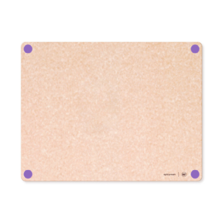 The Epicurean 622-19150114 Epicurean Prep Board is a versatile and durable kitchen essential, measuring 19-1/2 inches in length, 15 inches in width, and 3/8 inches in height, making it suitable for both professional chefs and home cooks. This rectangular prep board is designed with purple color-coded non-slip silicone feet, providing enhanced stability and safety during food preparation. Constructed from a paper composite material, this board is both non-porous and stain resistant, ensuring longevity and ease of cleaning. It is also dishwasher safe, adding convenience to its functionality. Proudly made in the USA, the Epicurean Prep Board is NSF certified, indicating its compliance with stringent public health and safety standards. This prep board is an excellent choice for those in the culinary industry who require a reliable and efficient cutting surface that meets high standards of safety and hygiene. Packed by two each per case, it is ideal for use in various food preparation environments, from professional kitchens to home settings, offering a practical and high-quality solution for cutting and chopping needs.