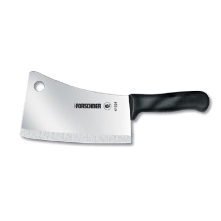 The Victorinox 7-6059-16 Cleaver 7" X 3" 15 Oz. is a finely crafted tool designed for precision and durability, making it an essential asset for culinary professionals across various market segments. This cleaver is distinguished by its substantial 7-inch by 3-inch blade, which is expertly balanced for heavy-duty kitchen tasks. Weighing in at 15 ounces, it provides just the right amount of heft for efficient cutting, chopping, and cleaving through dense ingredients. The handle, constructed from black polypropylene, is not only slip-resistant but also ergonomically designed to ensure a secure grip even in the most demanding kitchen environments. This material choice enhances both safety and comfort, minimizing the risk of accidents during use. As an NSF-certified product, the Victorinox 7-6059-16 Cleaver meets the highest standards for public health protection, making it a reliable choice for professional kitchens that prioritize safety and hygiene. Its robust construction and thoughtful design make it a versatile and reliable tool for chefs, butchers, and culinary enthusiasts alike, who demand precision and longevity in their kitchenware.