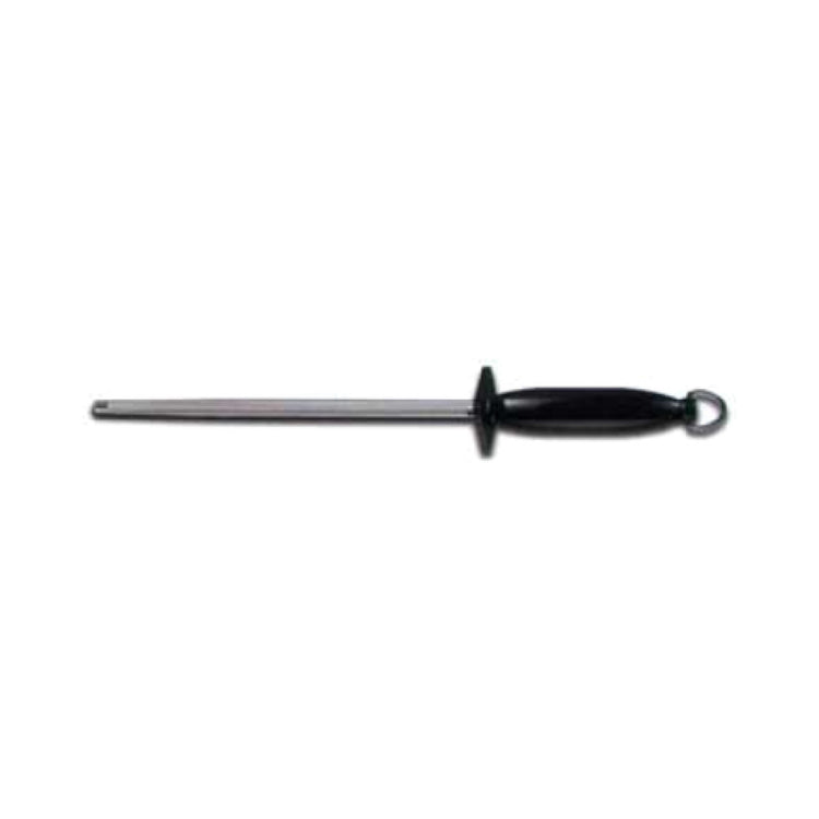 The Victorinox 7.8991.13 Sharpening Steel 9" Continental Cut Loose Ring is a high-quality tool designed for precision and efficiency in blade maintenance. With a 9-inch continental cut, this sharpening steel provides a substantial length that is ideal for accommodating various blade sizes, making it suitable for professional chefs and home cooking enthusiasts alike. The loose ring feature allows for easy hanging and storage, ensuring that this tool is conveniently accessible in any kitchen setting. Equipped with a black plastic handle, the sharpening steel offers a comfortable and secure grip, enhancing user control and safety during use. The inclusion of a hangtag adds an element of convenience, as it facilitates easy identification and access within crowded kitchen environments. Victorinox's reputation for durability and precision is embodied in this sharpening steel, making it a reliable choice for maintaining the sharpness and longevity of cutting instruments. This product is particularly valuable across different market segments, from culinary professionals seeking dependable tools for daily use to home cooks desiring to maintain the effectiveness of their kitchen knives. The Victorinox 7.8991.13 represents a blend of practicality and quality, tailored to meet the diverse needs of users within the culinary industry.