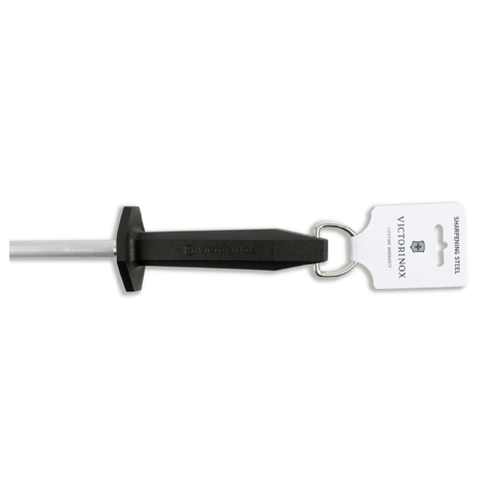 The Victorinox 7.8991.33 Sharpening Steel 12" Regular Cut Round is an essential tool for maintaining the sharpness of your knives, catering to a wide range of culinary professionals and home chefs alike. This sharpening steel measures 12 inches in length, providing ample surface area for efficient honing of blades. Its regular cut ensures a balanced edge restoration, suitable for maintaining the precision of both kitchen and professional knives. The round design allows for easy manipulation and consistent results, ensuring even sharpening across the blade. Equipped with a black plastic handle, this sharpening steel offers a comfortable grip, enhancing user stability and support during use. Moreover, the inclusion of a loose ring and hangtag facilitates convenient storage and accessibility, making it an ideal choice for environments where space is at a premium. This meticulous design underscores Victorinox's dedication to quality and functionality, ensuring that this sharpening steel meets the exacting standards of chefs, butchers, and culinary enthusiasts who demand excellence in their kitchen tools. Whether in a bustling restaurant or a home kitchen, the Victorinox 7.8991.33 Sharpening Steel stands out as a reliable and indispensable instrument for knife maintenance.