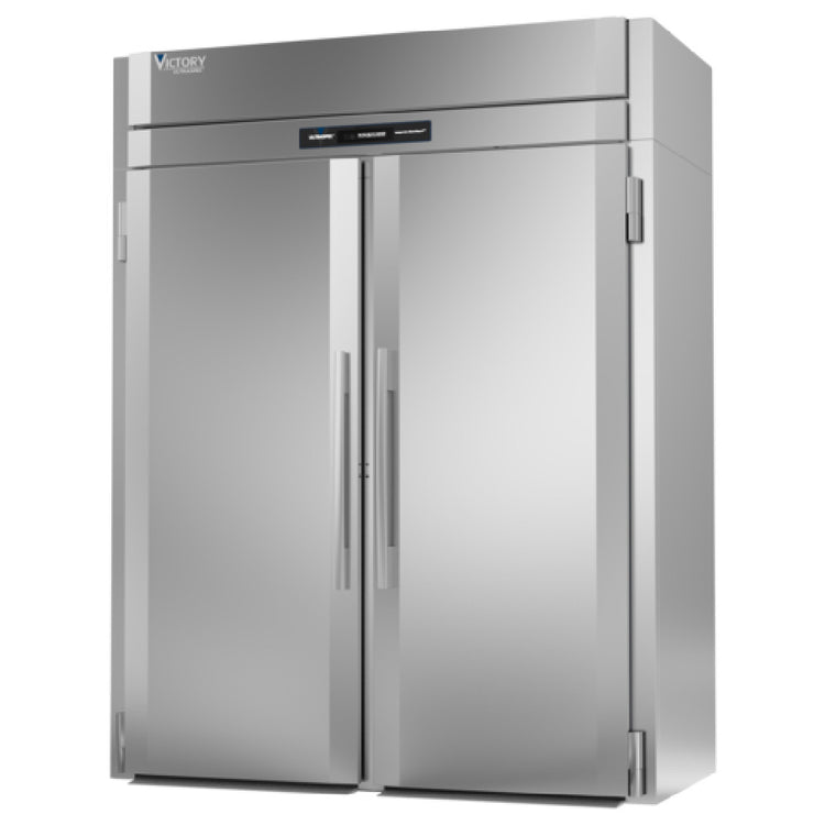 The Victory FISA-2D-S1-XH-HC UltraSpec™ Series Extra High Freezer Powered by V-Core™ is a state-of-the-art roll-in freezer designed for industries requiring high-capacity, reliable refrigeration solutions. Featuring a voluminous 77.35 cubic feet capacity, this two-section, self-contained unit is ideal for segments such as food service, healthcare, and research that demand consistent temperature maintenance and ample storage. The freezer boasts robust construction with a stainless steel exterior and aluminum interior, ensuring durability and ease of cleaning. It is equipped with two extra high 20-gauge stainless steel doors, providing enhanced strength and security. The TOUCH POINT™ electronic temperature control/indicator allows precise monitoring and adjustment of the internal environment. Advanced expansion valve technology is integrated for optimal efficiency. The freezer is fitted with Santoprene door gaskets, backed by a two-year warranty, for a reliable seal. Additional features include stainless steel breakers and a ramp for easy access, powered by two 3/4 HP motors. Certified by cULus, UL EPH Classification, and UL-Sanitation, this freezer meets stringent standards for safety and sanitation. Proudly made in the USA, the Victory FISA-2D-S1-XH-HC stands as a valuable asset for operations demanding high performance and reliability in refrigeration.
