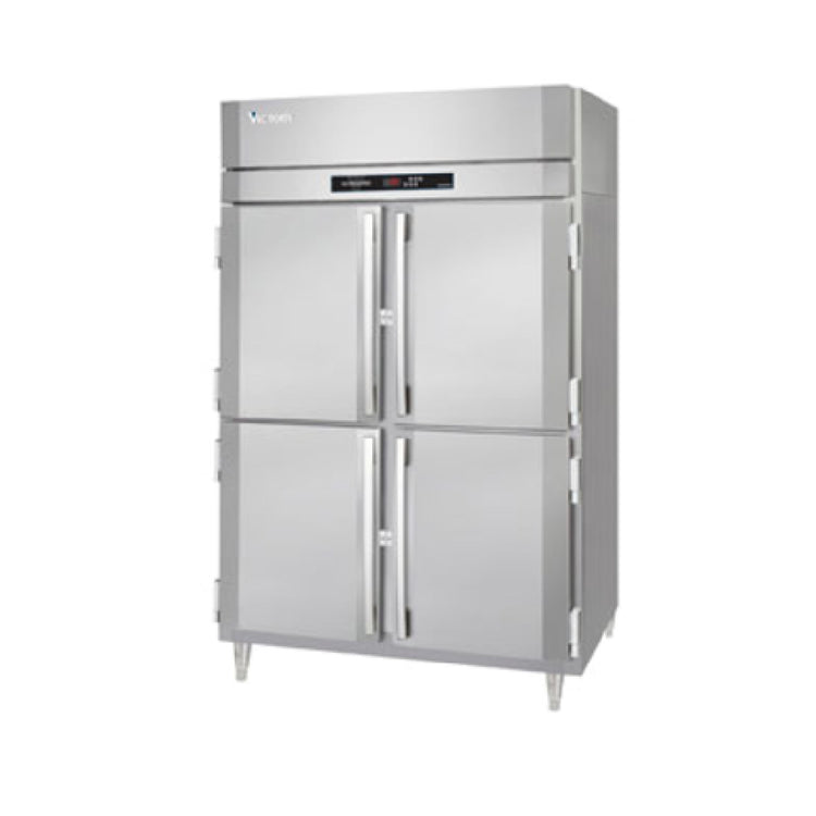 The Victory HS-2D-1-HD UltraSpec™ Series Heated Cabinet, Powered by V-Core™ Reach-in, stands out as a premier choice for professionals in various industries requiring reliable heated storage solutions. With a substantial 46.5 cu. ft. capacity, this two-section cabinet is engineered for optimal performance and versatility. It features four hinged doors, which are designed as half-height solid doors, providing easy access while maintaining consistent interior temperatures. The inclusion of six silver freeze (chrome-style) shelves enhances organization and storage efficiency. Constructed with a stainless steel exterior and interior, this cabinet ensures durability and longevity, making it suitable for demanding environments. Equipped with an exterior digital thermometer, users can easily monitor and maintain the desired temperature settings. Security is prioritized with cylinder locks, safeguarding the contents within. The standard depth cabinet is UL and UL EPH Classified, emphasizing its compliance with safety and performance standards. Proudly made in the USA, the Victory HS-2D-1-HD UltraSpec™ Series Heated Cabinet combines advanced technology with practical design, making it an indispensable asset for sectors such as hospitality, healthcare, and food service, where maintaining precise temperature control is critical.