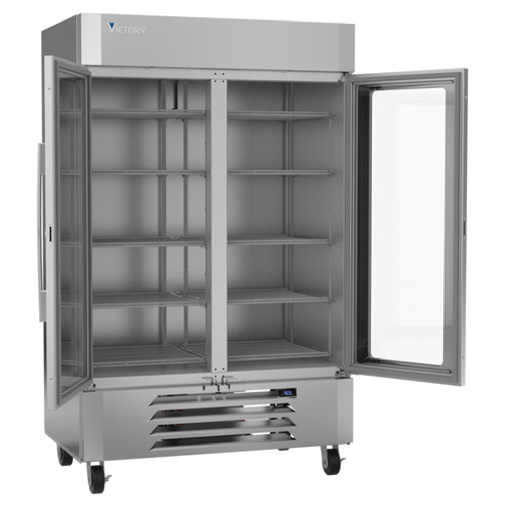 The Victory LSF49HC-1-IQ UltaSpec™ Series Merchandiser Freezer Powered By V-Core™ is a high-performance, reach-in freezer designed to meet the rigorous demands of commercial environments. With a substantial 46.2 cubic feet capacity, it accommodates a large volume of products, making it an excellent choice for grocery stores, convenience stores, and other retail food settings. This two-section freezer features full-height hinged glass doors, allowing for easy viewing and access to stored items. Each door section is equipped with five epoxy-coated shelves, ensuring durable and versatile storage options. Constructed with a stainless steel exterior and aluminum interior, the freezer promises durability and long-lasting performance. The unit is fitted with electronic LED lighting for enhanced visibility, and an electronic lock for security. Its advanced expansion valve technology optimizes cooling efficiency and performance. The freezer also includes a magnetic door gasket, backed by a two-year warranty, ensuring a tight seal to maintain optimal temperatures. Powered by a 1 HP bottom-mounted compressor, this merchandiser is cULus, UL EPH Classified, and UL-Sanitation certified, assuring compliance with high industry standards. Proudly made in the USA, the Victory LSF49HC-1-IQ offers reliability and performance for diverse market segments within the refrigeration industry.