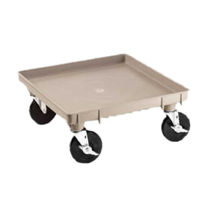 The Vollrath 1697-32-LC2 Rack-Master Dolly Base Platform Design No Handle is a versatile and robust solution designed for various industrial and commercial sectors that require efficient transport of heavy items. This dolly base features a platform design, specifically tailored for single-stack use, ensuring stability and ease of movement for users. Constructed from high-quality copolymer material, it provides durability and resistance to wear and tear, supporting a weight capacity of up to 350 lbs. Measuring 21 inches by 21 inches, the platform offers ample space for a range of storage needs. The inclusion of 5-inch casters, with two of them being locking, enhances maneuverability and safety, allowing for secure positioning when stationary. Its beige color adds a neutral aesthetic suitable for diverse environments. While it does not include a handle, its design optimizes space and adaptability, making it an excellent choice for businesses such as restaurants, warehouses, and catering services that require reliable and efficient material handling equipment. The Rack-Master Dolly Base from Vollrath embodies a perfect blend of functionality and practicality, meeting the demands of industries that prioritize efficient transportation of goods.