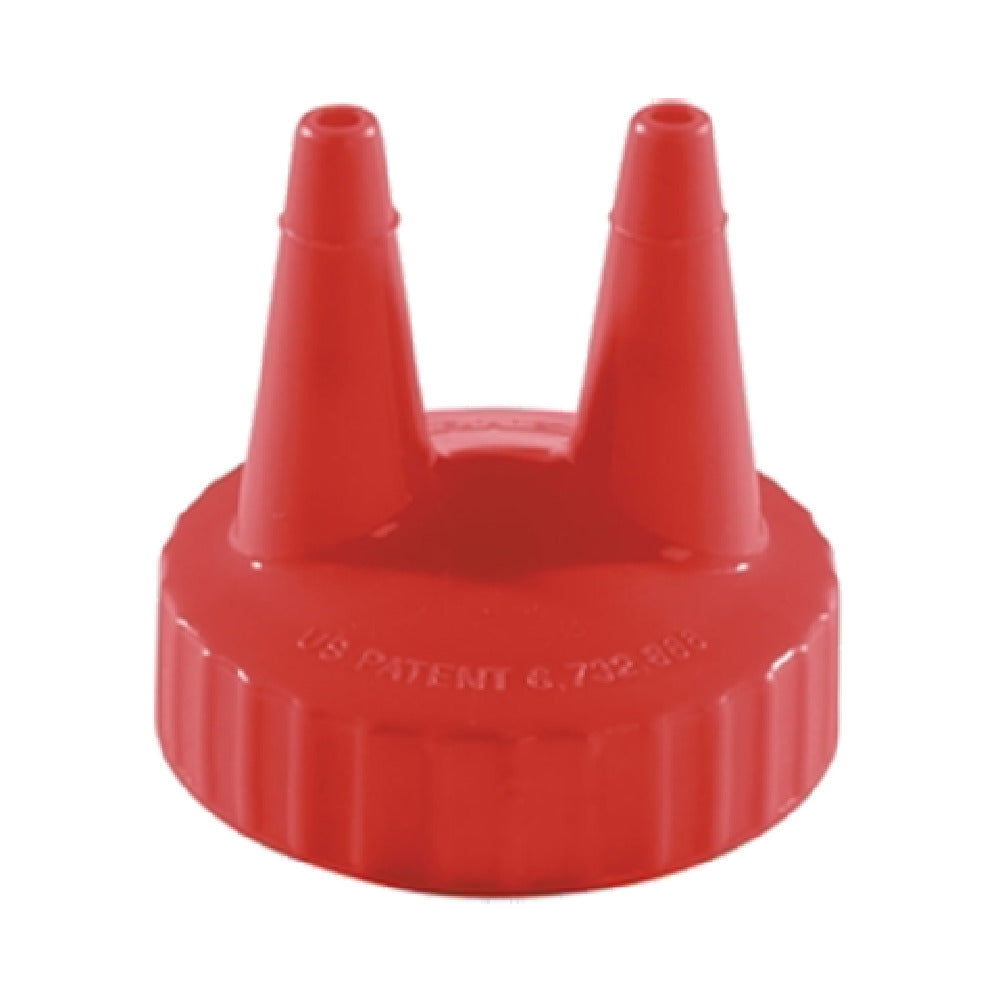The Vollrath 2200-02 Twin Tip™ Replacement Color Cap is a specialized accessory designed to fit 8-32 oz. standard mouth bottles, providing a versatile solution for various culinary and hospitality settings. This product is distinguished by its bright red color, ensuring easy identification and preventing cross-contamination in busy kitchens. Each case contains 12 caps, making it a practical and cost-effective choice for establishments requiring bulk quantities. The Twin Tip™ design enhances functionality by allowing precise dispensing from two separate points, ideal for sauces, dressings, and condiments, catering to both high-volume commercial kitchens and small-scale artisanal operations. The cap's compatibility with a wide range of bottle sizes, from 8 oz. to 32 oz., offers flexibility for diverse applications and storage needs. Constructed to meet industry standards, the Vollrath 2200-02 cap adds value through its durability and ease of use, supporting efficient kitchen operations. Whether used in restaurants, catering services, or food trucks, this replacement cap is engineered to withstand the rigors of daily use while maintaining performance and hygiene standards. Its distinctive features and robust design make it a valuable component in any food service operation, enhancing both convenience and functionality.