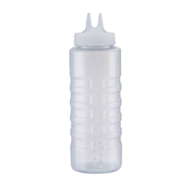 The Vollrath 2332-13 Traex Twin Tip Squeeze Bottle Dispenser 32 Oz. Wide Mouth is a versatile and practical solution for a variety of culinary needs, featuring a 32 oz. capacity that caters to high-volume usage in both commercial and home kitchens. This squeeze bottle is equipped with a wide mouth, facilitating easy filling and cleaning, thus enhancing operational efficiency. Its clear bottle design, accompanied by a clear cap, ensures quick identification of contents, making it ideal for busy kitchen environments where speed and accuracy are essential. The twin tip design of the dispenser allows for precision in application, making it suitable for a range of culinary tasks from decorating to drizzling. Packed by 12 each per case, this product is especially cost-effective for bulk purchasers such as restaurants, catering services, or food production facilities. With its focus on functionality and ease of use, the Vollrath Traex Twin Tip Squeeze Bottle Dispenser serves as a valuable tool in the food industry, meeting the demands of different market segments by providing a reliable and efficient method for condiment and sauce dispensing. Its thoughtful design supports not only high performance but also adaptability in various culinary settings.