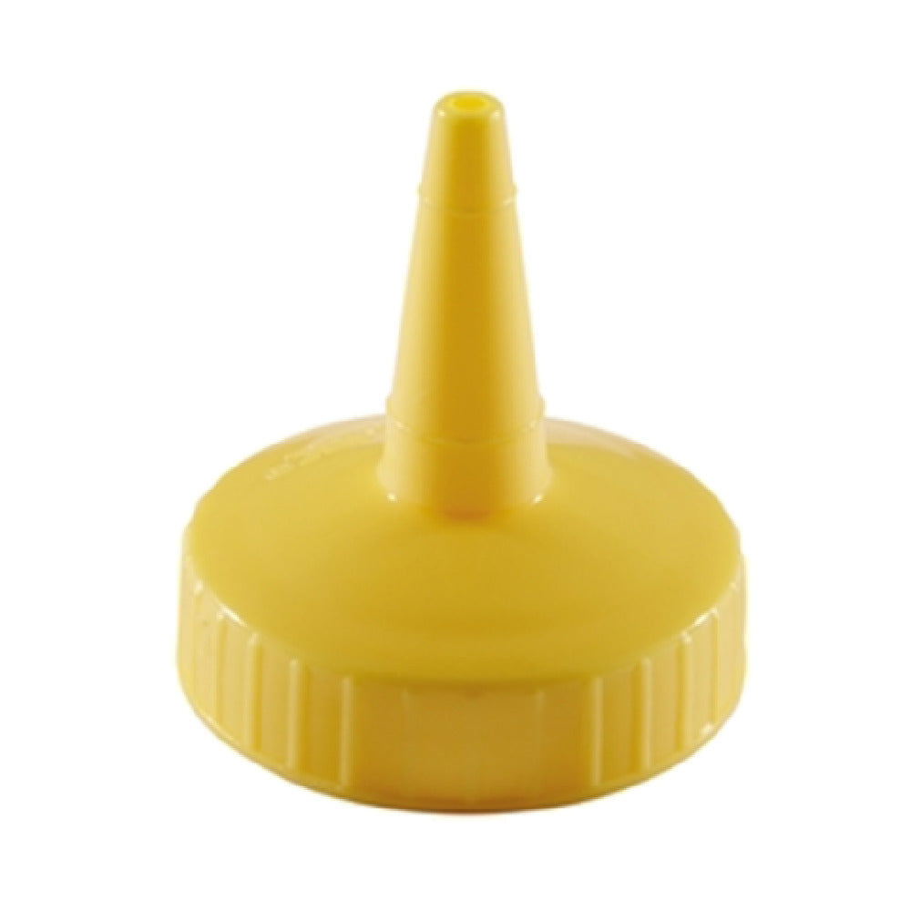The Vollrath 2813-08 Squeeze Bottle Dispenser Spout Cap is a versatile accessory designed to fit standard 8-32 oz. standard mouth bottles, providing an efficient solution for dispensing liquids in a variety of settings. This yellow spout cap is packaged in cases of 12, ensuring ample supply for busy establishments. Its compatibility with a wide range of bottle sizes makes it an adaptable choice for restaurants, catering businesses, and food service operations that require precise control over liquid dispensing. The design of the cap promotes ease of use, allowing for effortless squeezing and accurate pouring, which is essential for maintaining consistency in food presentation and taste. Its robust construction ensures durability and long-lasting performance, even in high-volume environments. The Vollrath 2813-08 is particularly valuable for kitchens looking to streamline their operations by minimizing spills and waste, contributing to a cleaner and more efficient workspace. Its universal fit and practical design make it an indispensable tool for professionals who demand reliability and functionality in their kitchen accessories. This product embodies Vollrath's commitment to quality and innovation in food service equipment.