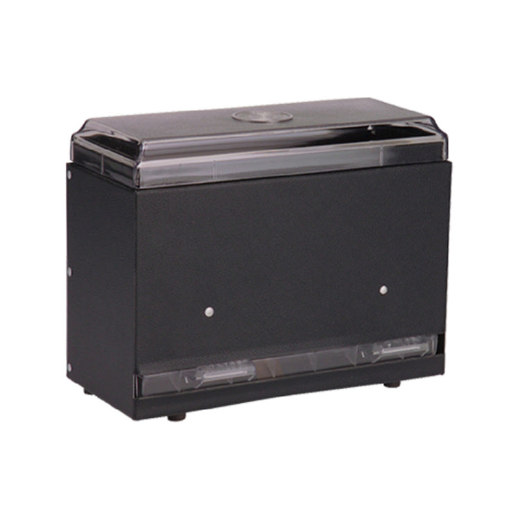 The Vollrath 3825-06 Straw Boss Jr. Dispenser is a single-sided unit designed for high-volume straw dispensing with a capacity of 250 straws, making it suitable for various food service environments that require efficient and organized straw distribution. Measuring 9 inches long, 4 inches wide, and 7 inches high, this dispenser is compact yet robust, featuring a heavy gauge metal housing that ensures durability and longevity in bustling settings such as cafes, fast-food restaurants, and cafeterias. The plastic lid and dispensing bar provide a smooth and reliable operation, accommodating both paper and plastic straws with diameters ranging from 0.230 inches to 0.265 inches and straw lengths between 7-1/2 inches and 8-3/4 inches. Its sleek black finish complements a variety of decors, offering a professional appearance while maintaining practicality. The Vollrath 3825-06 Straw Boss Jr. Dispenser is specifically engineered for ease of use, ensuring that staff and customers alike can access straws effortlessly, thus enhancing the efficiency of service operations. This dispenser represents a blend of functionality and style, catering to establishments aiming for high-standard service performance while managing space and operational flow efficiently.