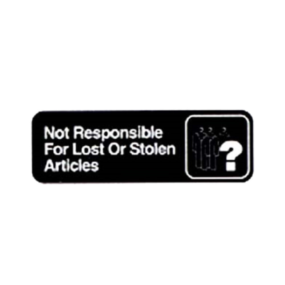 Vollrath 4532 Not Responsible For Lost Or Stolen Articles Sign 3" X 9" White On Black