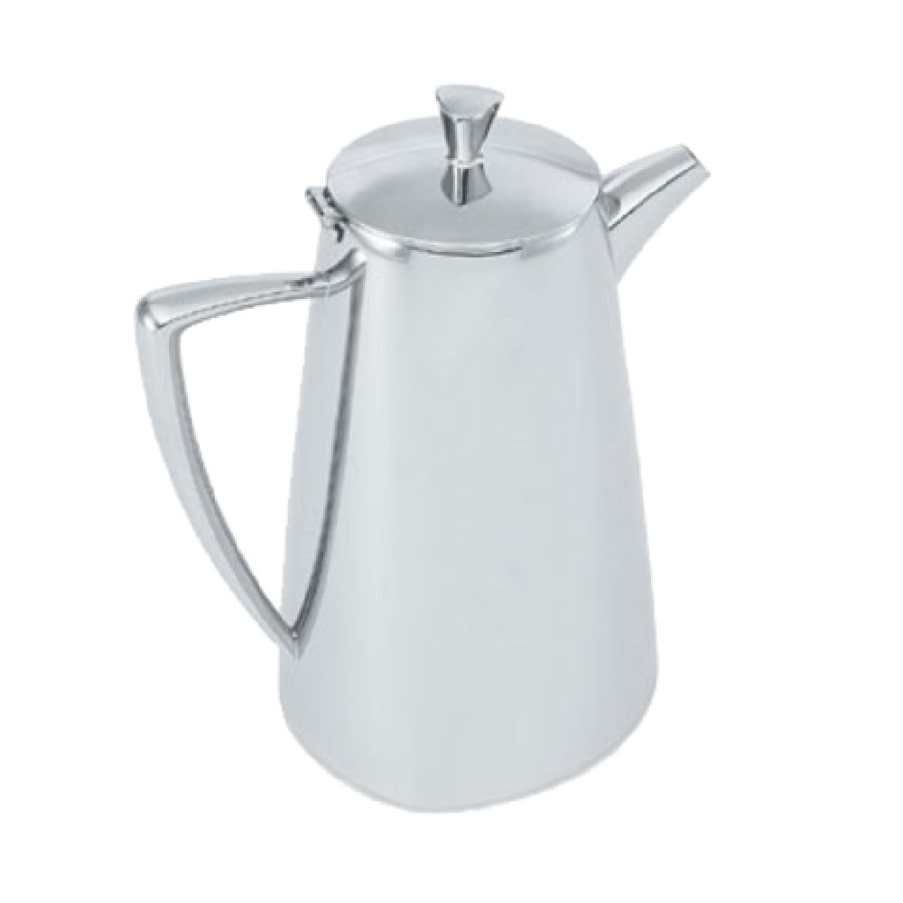The Vollrath 46203 Triennium™ Coffee Pot 2.3 Quart (2L) 8-3/8"H is a meticulously engineered piece designed to meet the diverse needs of various market segments in the foodservice industry. Constructed from mirror-finish 18/8 stainless steel, this coffee pot not only exhibits a sleek and modern appearance but also ensures durability and resistance to corrosion. Its unique triangular body design adds a touch of elegance while providing a stable base, making it suitable for both formal dining settings and casual environments. The hollow tubular handle is crafted for ease of handling and grip, enhancing the user experience when pouring and serving coffee. Inside, the satin-finish interior ensures easy cleaning and maintenance, which is crucial for maintaining hygiene standards in high-volume settings such as hotels, restaurants, and catering services. Standing at 8-3/8 inches in height, it fits comfortably on any countertop without consuming excessive space, making it an ideal choice for establishments with limited workspace. This imported coffee pot combines aesthetic appeal with practical functionality, catering to the needs of professional chefs and baristas who value efficiency and style. Its thoughtful design and robust construction make the Vollrath 46203 Triennium™ Coffee Pot a valuable addition to any professional kitchen or hospitality venue.