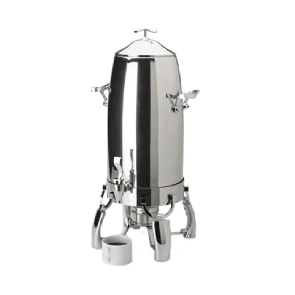 The Vollrath 4635510 Somerville™ Coffee Urn is a 5-gallon capacity coffee urn constructed from heavy-gauge stainless steel with a striking mirror finish, designed to meet the needs of various professional settings. Its durable solid legs, supported by welded construction, ensure stability and longevity, making it ideal for high-traffic environments. Measuring 13 inches in length, 13-1/2 inches in width, and 27-3/8 inches in height, this coffee urn fits seamlessly into any service area. The unit can operate using standard fuel or a separately sold Vollrath electric heater, offering flexibility in service methods to cater to diverse operational preferences. As an imported product, it brings a level of global manufacturing quality to the table. The Vollrath 4635510 Somerville™ Coffee Urn is especially valuable to businesses requiring large-volume coffee service such as hotels, banquet halls, and catering companies. Its robust construction, combined with the flexibility of fuel options, provides a practical solution for different market segments in the hospitality and food service industries, ensuring reliable performance and an elegant appearance at every event.