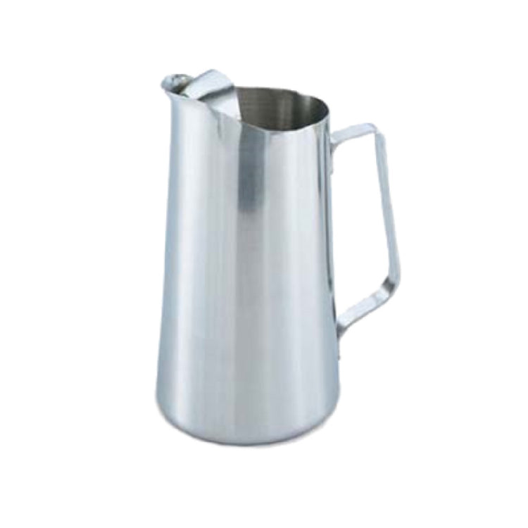 The Vollrath 46403 Water Pitcher is a stainless, straight-sided vessel designed to elevate the functionality and aesthetic of any beverage service setting. With a capacity of 2 quarts, this water pitcher is the perfect size for serving a range of beverages from water to iced tea, making it ideal for use in restaurants, catering events, and hotel banquets. Its straight-sided design not only provides a modern and sleek appearance but also ensures stability and ease of handling. One of its key features is the built-in ice guard, which effectively prevents ice from splashing into glasses, ensuring a smooth and controlled pour. Imported and crafted to high standards, the Vollrath 46403 is a durable choice for commercial use. Its stainless steel construction not only guarantees longevity and resistance to corrosion but also adds a touch of sophistication to any tabletop presentation. This water pitcher is tailored for different market segments within the food service industry, especially those requiring reliable and stylish serving solutions. Whether used in high-paced environments or elegant dining settings, the Vollrath 46403 Water Pitcher delivers a blend of practicality and elegance, making it a versatile addition to any professional setting.