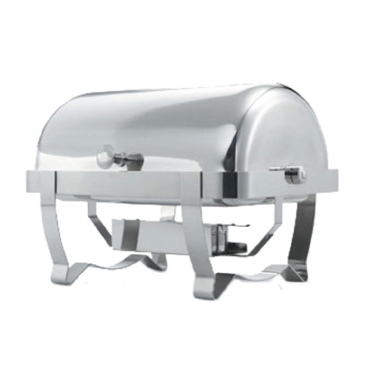 The Vollrath 46520 Orion® Retractable Chafers Full Size 9 Quart (8.6L) is an essential piece for food service operations looking for efficiency and style. Crafted from 18-10 mirror finish stainless steel, this chafer combines durability with an elegant design. The cover is engineered to retract to a 90° angle and fully open position, facilitating easy access and serving while maintaining food temperature. This chafer includes a stand, a water pan, a food pan, a ventilated cover, and two fuel holders, making it a comprehensive solution for buffet presentations or catered events. Measuring 25 inches wide, 16 inches deep, and 17 inches high, it fits seamlessly into a range of settings. Imported for quality assurance, the Vollrath 46520 Orion® Retractable Chafer is versatile, catering to the needs of hotels, restaurants, and catering businesses seeking to enhance their service with a reliable and aesthetically pleasing presentation tool. Its full-size 9-quart capacity enables significant food holding, making it suitable for large gatherings or high-traffic dining situations. The combination of practical design and polished appearance ensures that this chafer meets the high demands of professionals in the food service industry.