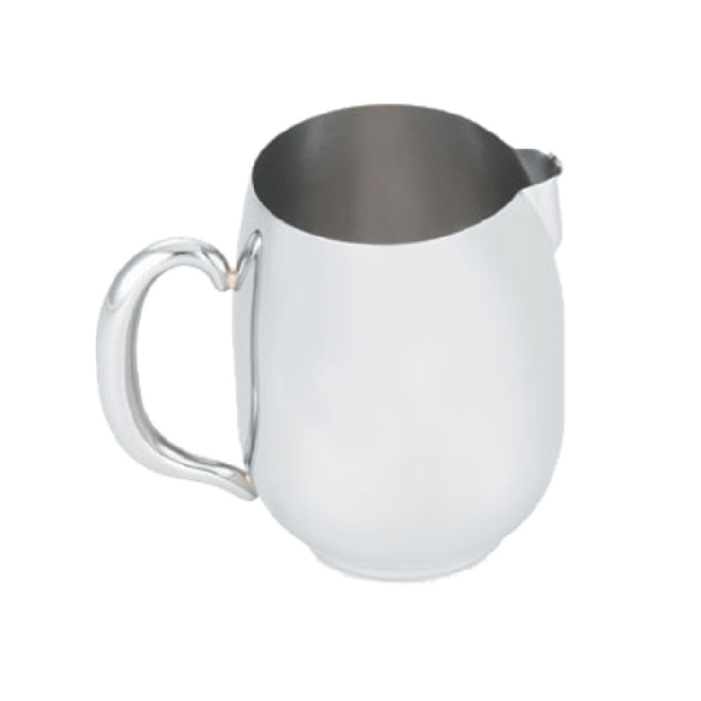 The Vollrath 46634 Orion® Water Pitcher - 68 Oz. (2.0L) - 6-3/4"H is a precision-engineered beverage service solution that combines functionality with aesthetic appeal. Crafted from high-quality 18/8 stainless steel, this pitcher ensures durability and longevity, making it a reliable choice for high-volume settings. The mirror-finish exterior offers a sleek, polished look, complementing the refined design of upscale dining environments, while the satin finish interior provides a subtle contrast, enhancing its visual appeal. The design includes a hollow tubular handle which not only adds to its modern aesthetic but also ensures a comfortable and secure grip, facilitating ease of use for waitstaff and guests alike. Standing at 6-3/4 inches high, this pitcher fits effortlessly into various storage and serving spaces, making it versatile for diverse applications such as banquets, hotels, and restaurants. Imported with attention to detail, the Vollrath 46634 Orion® Water Pitcher demonstrates exceptional craftsmanship, ensuring it meets the demands of both form and function in any service setting. Its substantial 68-ounce (2.0L) capacity is ideal for efficiently serving multiple guests, making it an invaluable asset for any establishment seeking to enhance their beverage service experience with a touch of elegance and practicality.