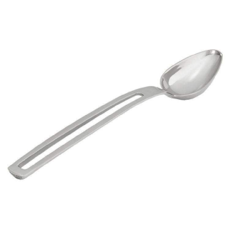 The Vollrath 46720 Miramar® Contemporary Style Serving Spoon is expertly crafted for both aesthetic appeal and practical functionality, distinguished by its solid oval bowl design with a precise capacity of 1 oz. This serving spoon boasts an overall length of 10.96 inches, making it a versatile tool for a range of culinary applications. Constructed from high-quality stainless steel, this serving spoon guarantees durability and long-lasting performance. One of its standout features is the capacity markings on the back of the handle, conveniently labeled in ounces, milliliters, and cups, which allows for precise measuring and serving, particularly useful in professional kitchens where accuracy is paramount. The spoon adheres to NSF standards, ensuring compliance with rigorous public health and safety standards, making it ideal for use in restaurants, catering services, and institutional food services. The Vollrath 46720 Miramar® Serving Spoon's combination of stylish design and functional precision makes it suitable for buffet settings, upscale dining experiences, and everyday kitchen use, offering a reliable tool for chefs and servers alike.