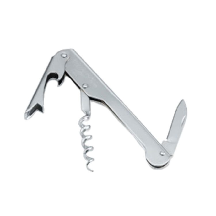 The Vollrath 46789 Waiter's Cork Screw is a versatile tool designed for professionals in the food and beverage industry, combining functionality with convenience in a compact form. This stainless steel pocket style corkscrew measures 4 5/8 inches in length, making it a portable and efficient accessory for waitstaff, bartenders, and wine enthusiasts alike. Its robust construction ensures durability and consistent performance, even in high-demand environments. The incorporated knife and cap lifter further enhance its utility, offering a multi-functional solution for opening wine bottles and other beverages with ease. This product is imported, reflecting an attention to sourcing quality materials and craftsmanship. As a reliable companion for any hospitality professional, the Vollrath 46789 Waiter's Cork Screw stands out for its practical design and essential features, making it a valuable addition to any service toolkit. Whether in a bustling restaurant or a quiet home setting, this corkscrew caters to various segment markets by delivering reliable performance and ease of use, underscoring its role as a staple in the wine service industry.