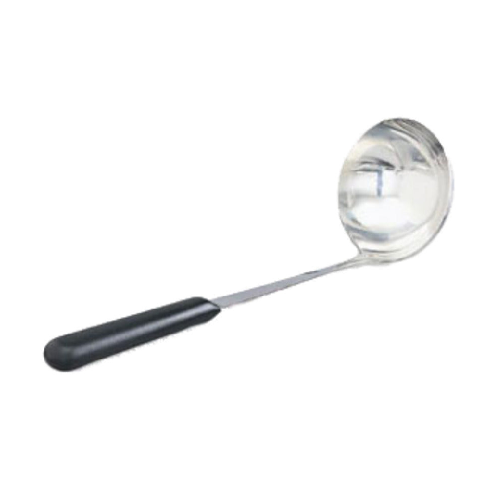 The Vollrath 46916 Kool-Touch® Hollow Handle Buffetware Ladle is a 4 oz. utensil, measuring 12-9/16 inches in length, perfect for a variety of serving needs. Crafted from high-quality stainless steel, this ladle combines durability with functionality, making it an essential tool in any food service setting. The ladle's standout feature is its black insulated coating, which enhances safety and comfort during use, preventing heat transfer to the handle. This Kool-Touch® technology is particularly beneficial in buffet and catering environments where utensils are left in hot dishes for extended periods. The hollow handle design not only contributes to a lightweight and balanced feel but also aids in reducing hand fatigue during repetitive use. The imported construction ensures a level of craftsmanship that aligns with international standards, making it a reliable choice for professional chefs and caterers. Whether used in a bustling restaurant, a catered event, or a formal banquet, the Vollrath 46916 ladle provides a practical solution with its combination of style, safety, and efficiency, meeting the diverse demands of the foodservice industry with its precise 4 oz. capacity and ergonomic design.